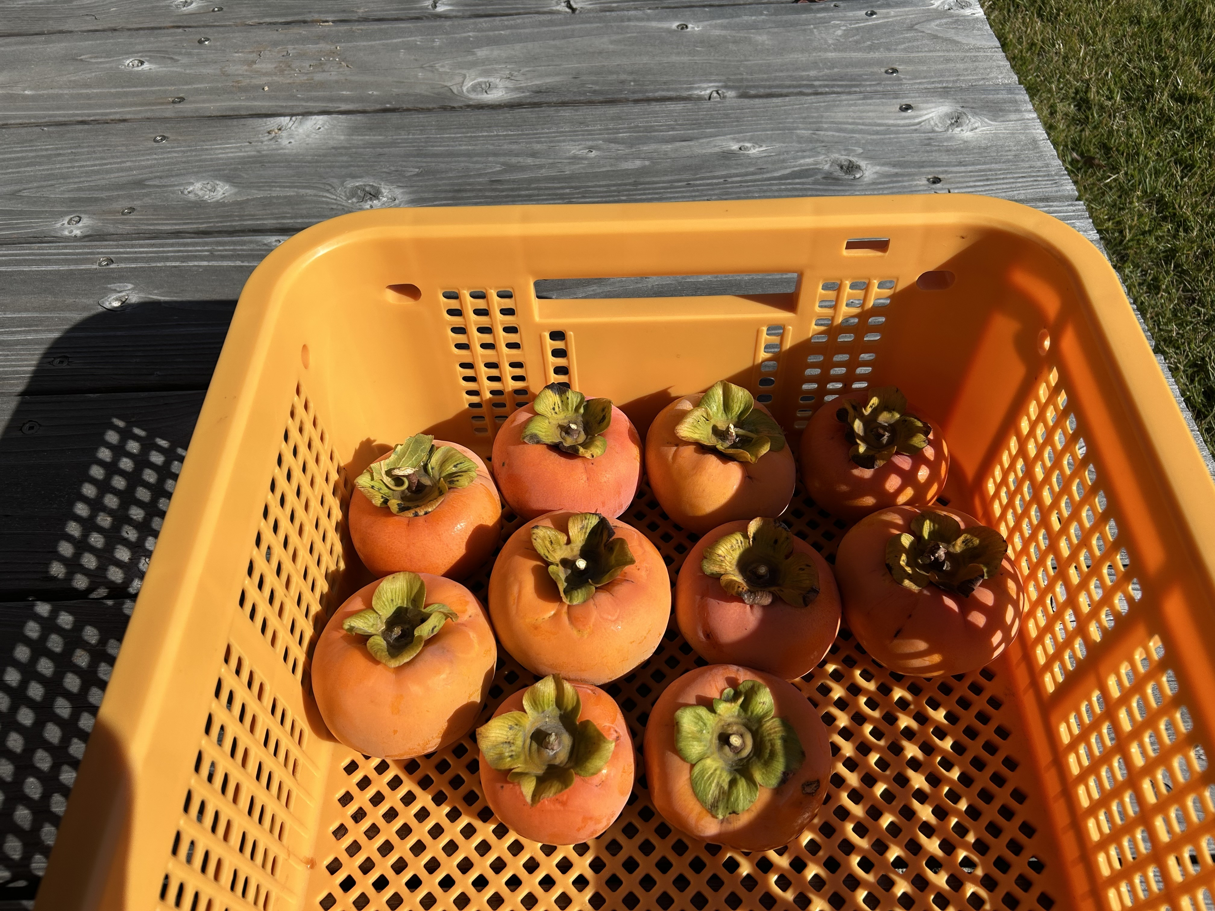 季節はすっかり秋になり、今年も庭の木にたくさんの柿がなりました。